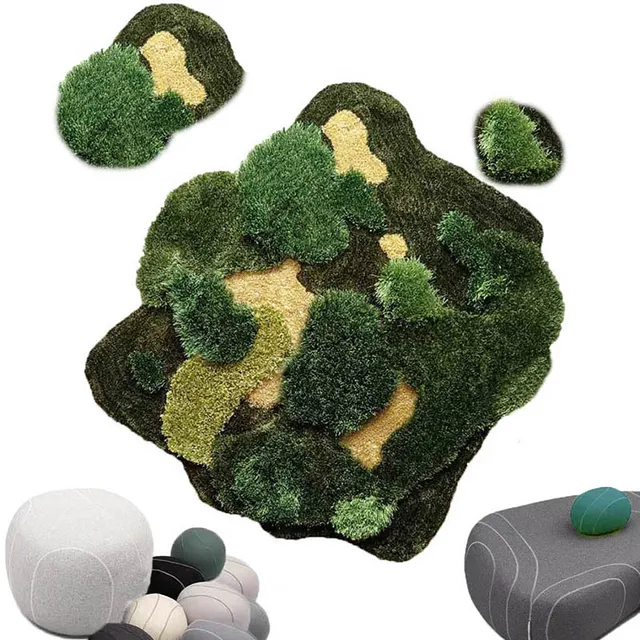 Green Forest 3D Stereo Irregular Carpet, Plush Area Rug for kid's room, Carpets for Living Room, Bedroom,Home Decor moss Rug